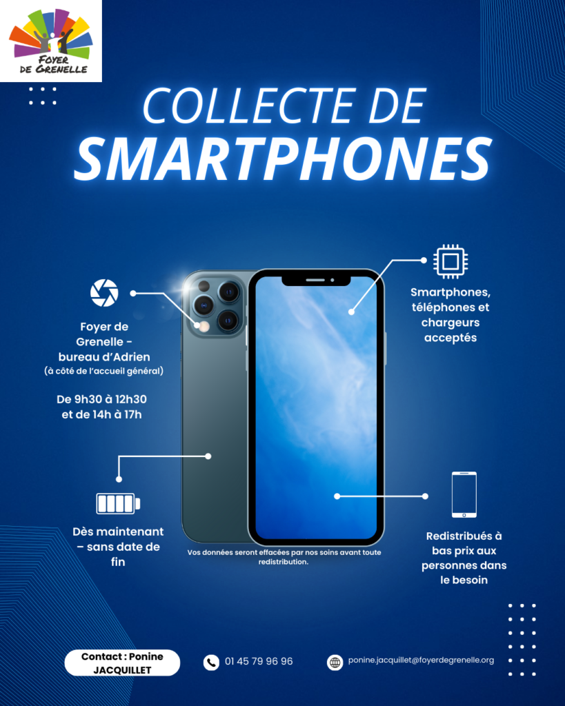 Le Foyer de Grenelle organise une collecte éco-solidaire de téléphones, smartphones et chargeurs.