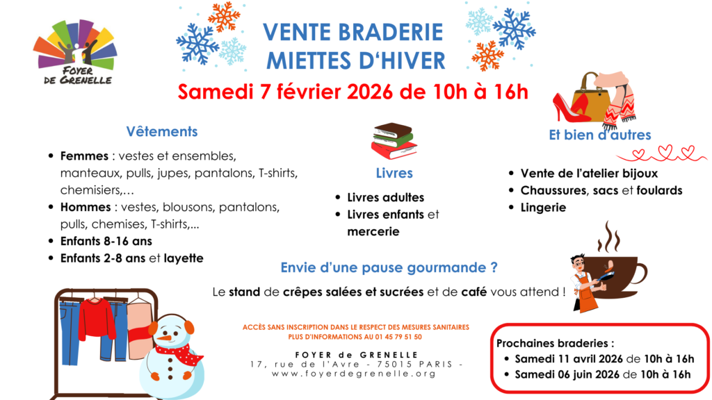 L’équipe du Foyer de Grenelle vous communique quelques informations pour janvier 2026
