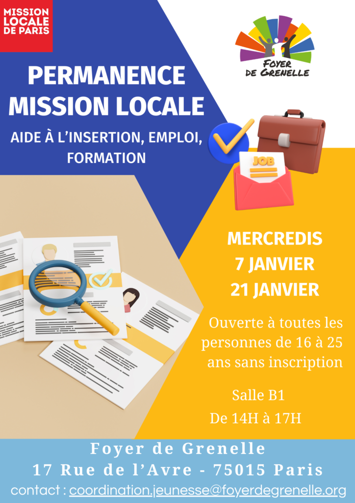 Mercredi 21 janvier 14h à 17h – Permanences Mission Locale