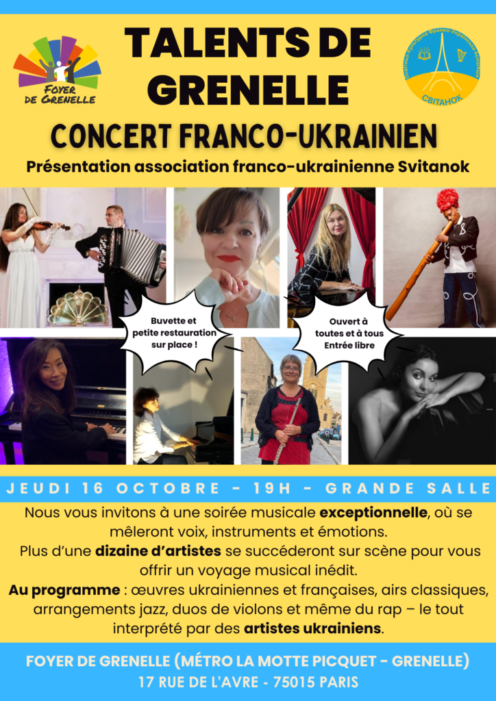 Jeudi 16 octobre de 19h à 21h – Talents de Grenelle – Concert Franco-Ukrainien