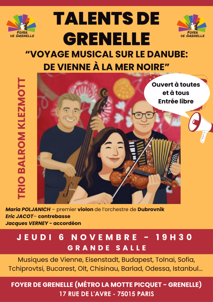 Jeudi 6 novembre à 19h30 – Talents de Grenelle – Voyage musical sur le Danube: de Vienne à la Mer Noire