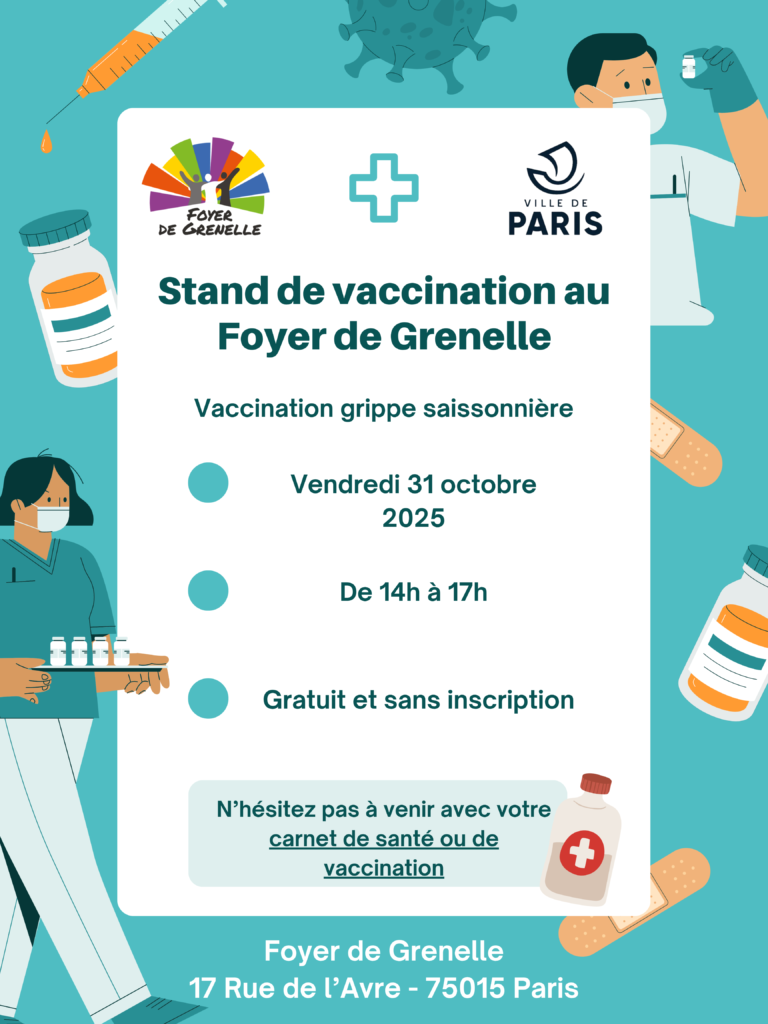 Vendredi 31 octobre de 14h à 17h – Stand de vaccination Au Foyer de Grenelle